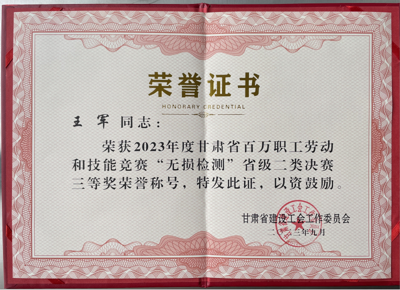 此次獲獎,不僅是對選手專業知識能力的認可,也是對單位組織能力的認可。甘肅建科院將以此為契機,充分調動職工的學習熱情,促進無損檢測試驗人才隊伍建設,為企業的高質量發展提供支持。