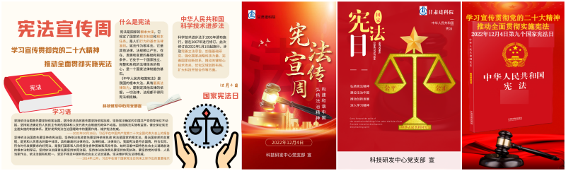 12月4日至8日,科技研發中心黨支部圍繞“學習貫徹黨的二十大精神,推動全面貫徹實施憲法”主題,舉行了“憲法宣傳周”系列活動。組織干部職工集中學習了《憲法》《民法典》《公司法》《安全生產法》《中華人民共和國反電信網絡詐騙法》和《中華人民共和國科學技術進步法》等法律法規、開展憲法宣傳海報設計和憲法知識競答活動,督促引導廣大職工知法、學法、懂法、守法、用法,樹立憲法思維,筑牢法律防線,切實維護憲法權威,激發了廣大職工參與憲法學習的積極性和主動性。