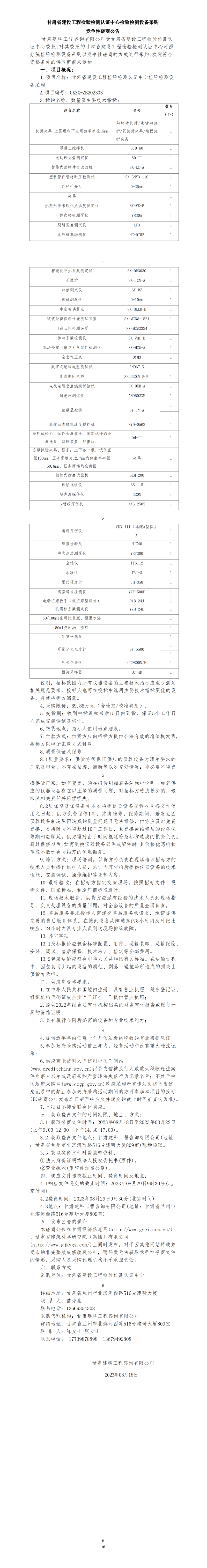 甘肅省建設工程檢驗檢測認證中心檢驗檢測設備采購競爭性磋商公告