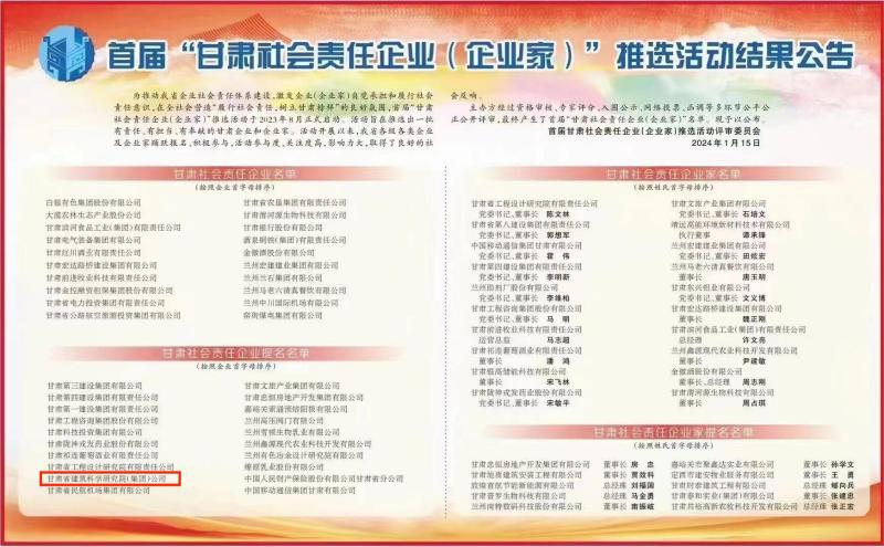 甘肅建科院榮獲“甘肅社會責任企業提名”