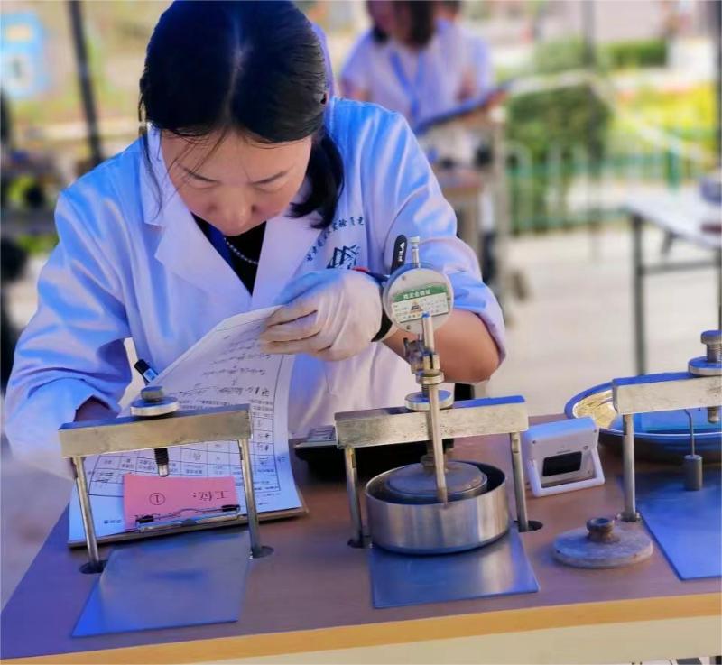 賽項設置分為理論考試和實際操作兩部分。通過理論能力競賽和“開樣、密度試驗、液限、固結試驗”等成績,實現了對參賽選手綜合素質的有效評價。在競賽過程中,選手們充分發揮各自優勢,在盡情展示技能和才華的同時,互相學習、互相交流、共同提高技能水平,展現了團結奮進、昂揚向上的精神風貌,真正達到了提高土工試驗員技能水平和綜合素質的競賽目的。
