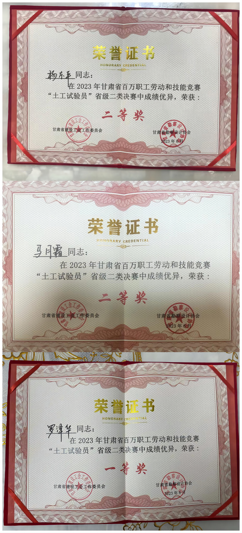 6月20日,由省建設工會、省勘察設計協會主辦的甘肅省百萬職工勞動和技能競賽“土工試驗員”省級二類決賽在甘肅中建市政工程勘察設計研究院有限公司拉開帷幕。經過一天的激烈角逐,甘肅建科院選手羅澤華在全省65名選手中脫穎而出,榮獲個人一等獎,楊東平和馬月霜兩名選手榮獲個人二等獎。