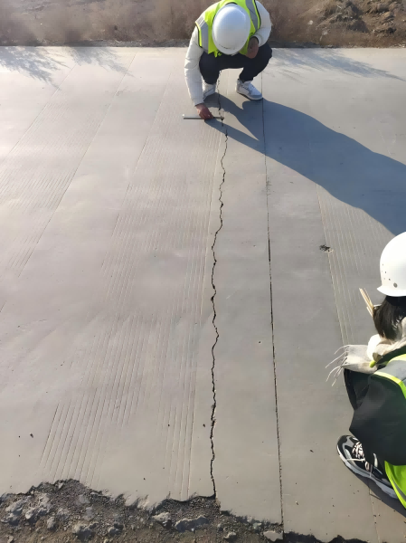 在項目質(zhì)量檢測過程中,檢測人員認(rèn)真查閱工程資料,對照工程圖紙,實地查驗每條道路,沿著每條道路,認(rèn)真對照圖紙規(guī)范,嚴(yán)格對相關(guān)指標(biāo)進行檢測,對不符合技術(shù)指標(biāo)的里程樁號進行詳細登記,結(jié)合工程資料、現(xiàn)場檢測情況,形成相關(guān)報告,提出意見建議,最終反饋至蘭州新區(qū)城鄉(xiāng)建設(shè)和交通管理局。