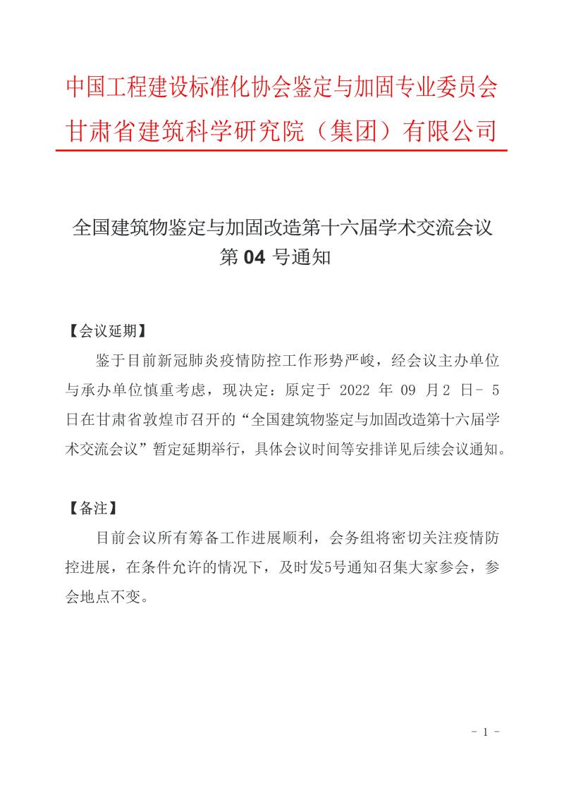 全國建筑物鑒定與加固改造第十六屆學術交流會議 第04號通知