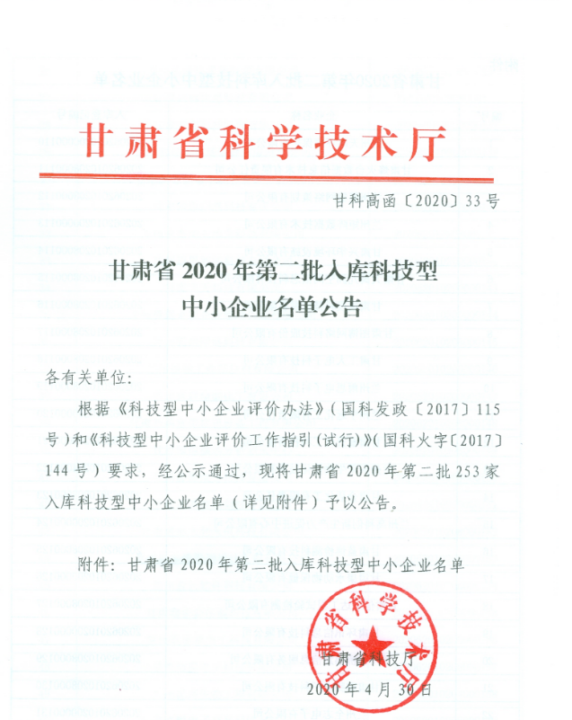 據(jù)省科學(xué)技術(shù)廳網(wǎng)站消息,甘肅建研建設(shè)公司獲批入庫甘肅省科技型中小企業(yè)。這是繼去年成功申報(bào)高新技術(shù)企業(yè)之后,建研建設(shè)公司取得的又一喜人成果,代表著建研建設(shè)公司的科技研發(fā)工作又邁上了一個(gè)新臺(tái)階。