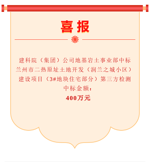 甘肅建科院地基巖土事業(yè)部中標(biāo)蘭州市二熱原址土地開發(fā)(潤蘭之城小區(qū))建設(shè)項(xiàng)目(3#地塊住宅部分)第三方檢測(cè)