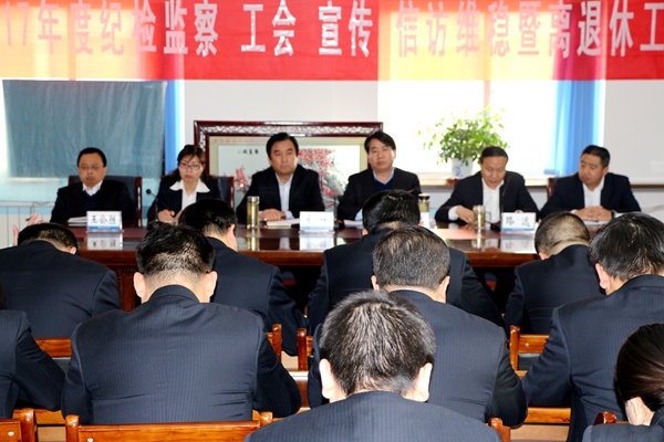 2月24日,科研院召開紀檢監察、 工會、宣傳、信訪維穩、“雙聯”行動暨離退休工作會議,緊跟總公司“六會合一”腳步,科研院率先開展轉作風、轉會風行動,六會合一,精簡務實,高效安排部署2017年黨建工作。