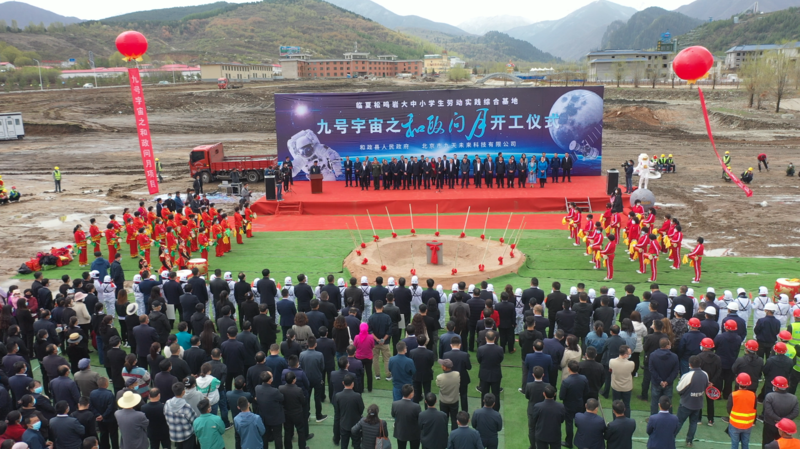 戰略合作協議簽訂儀式后,張永志一行前往松鳴巖大中小學生勞動實踐綜合基地暨九號宇宙之“和政問月”項目現場,參加了開工儀式,并為項目培土奠基。