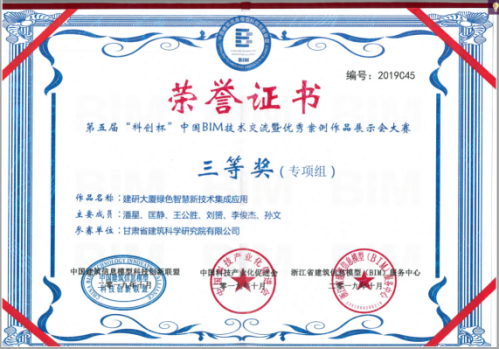 第十八屆中國住博會暨第五屆“科創杯”中國BIM優秀案例作品展示會于11月8日在北京國際會展中心順利召開。建科院“建研大廈綠色智慧新技術集成應用”榮獲此次BIM大賽的最佳專項應用組三等獎。