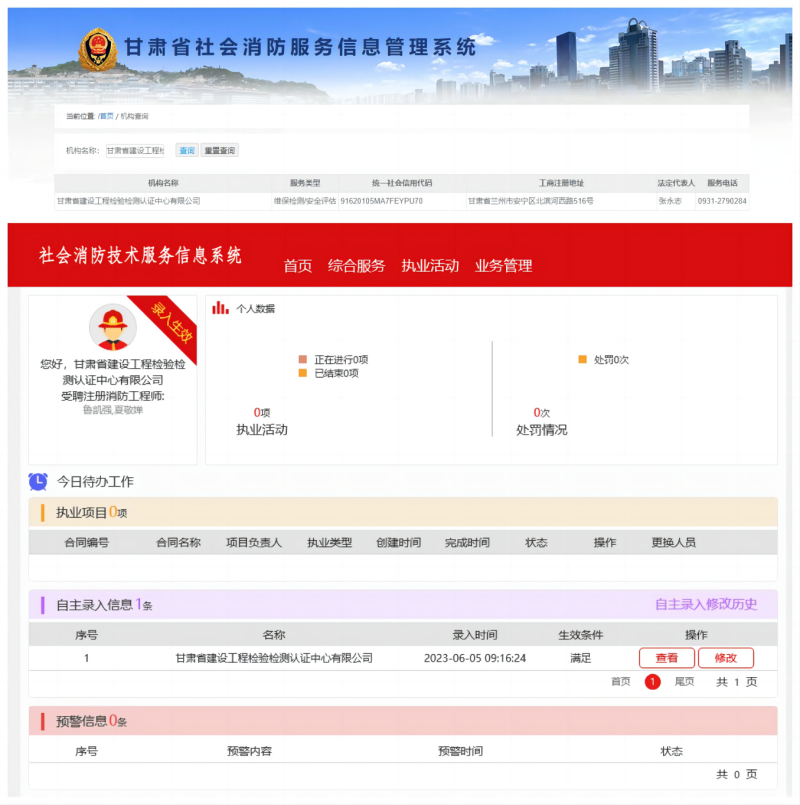 甘肅省建設工程檢驗檢測認證中心有限公司取得消防維保檢測、安全評估資質