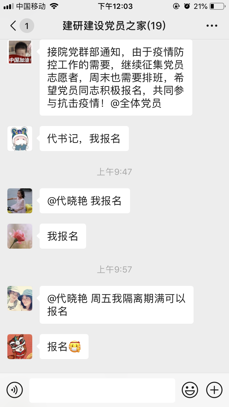 筑牢生命防線,踐行初心使命,共產黨員責無旁貸。面對疫情下的復工復產,建科院建研建設公司的黨員頂上去,沖在前,踐行著入黨時許下的錚錚誓言。2020年2月4日,建研建設公司黨支部發起主題黨日活動“倡議我響應,防控我行動”。疾風知勁草,2月7日建研建設公司建立黨員責任區,征集志愿者,廣大黨員踴躍報名,迎難而上,沖鋒在前,無私奉獻,積極投入到疫情防控工作中。