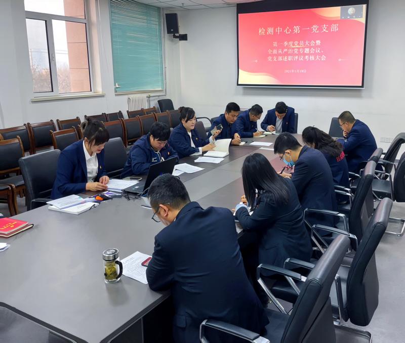 檢測中心第一黨支部召開一季度黨員大會暨全面從嚴治黨專題會議、黨支部述職評議考核大會