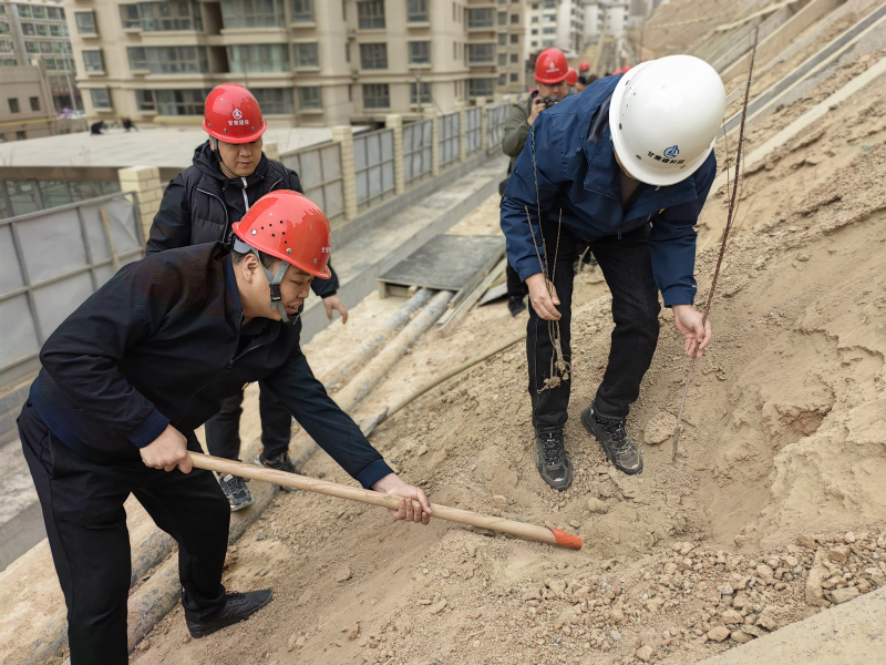 春回大地萬物蘇,植樹添綠正當時。3月15日下午,甘肅建科院建研建設公司黨支部依托九洲新華小區邊坡加固綠化項目,與項目甲方甘肅新華房地產公司黨支部開展支部聯建植樹節主題黨日活動。兩單位領導班子成員、支部委員、團員青年代表、勞務班組代表共計40余人參加了本次活動。活動由甘肅建科院建研建設黨支部副書記孫藝珊主持。