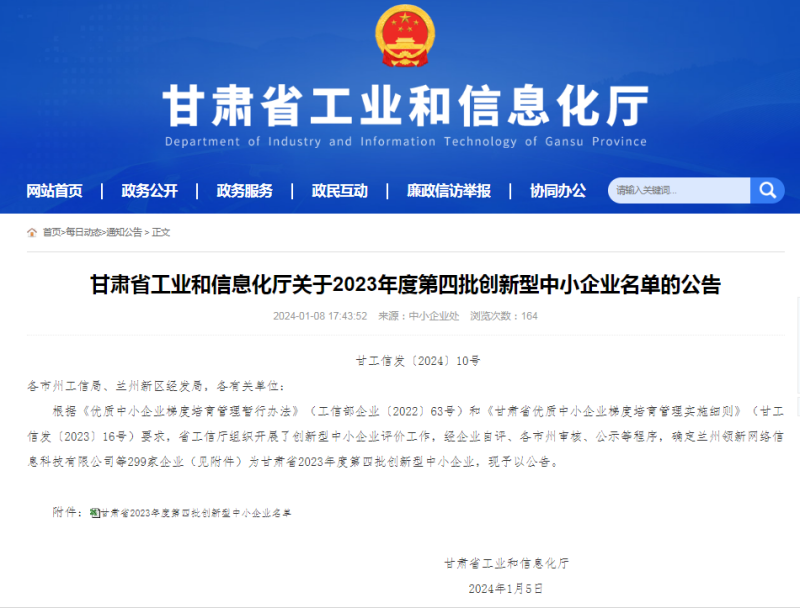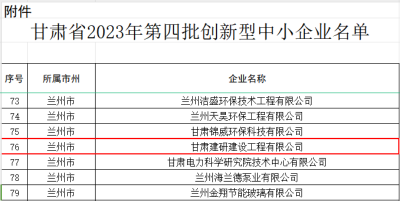 近日,甘肅省工業(yè)和信息化廳發(fā)布了“甘肅省第四批創(chuàng)新型中小企業(yè)”名單,甘肅建研建設(shè)工程有限公司榜上有名。