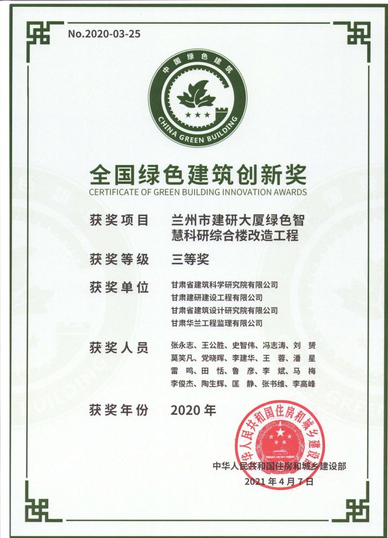公司以科技創新為引領,三年來,以甘肅建科院為依托成立了“中國工程建設標準化協會建筑物鑒定與加固專業委員會甘肅專家委員會”和“甘肅省建筑修復更新改造專業委員會”;獲批甘肅省工信廳行業技術中心等科研平臺;科研立項課題共28項,其中國家級項目2項。專利授權量累計200余件,起草主編國家、行業及地方標準圖集120余部。先后榮獲全國綠色建筑創新獎、全國用戶滿意標桿企業、第七屆甘肅省政府質量獎提名獎以及“甘肅十佳設計研究院”等百余項國家級、省部級等各類榮譽稱號,綜合實力和社會影響力持續提升。