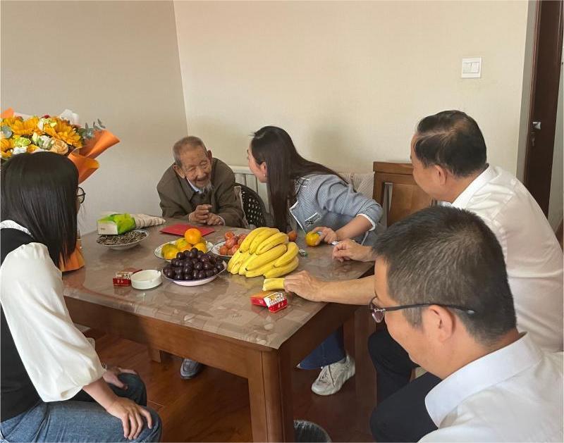 在薛篤昶老人家中,看到他在家人的照顧下,身體健康,精神狀態很好,大家都非常高興。趙媛仔細詢問了薛老的起居飲食情況,叮囑老人家屬要照顧好老人的日常生活,并表示“家有一老,如有一寶”,百歲老人不僅是家中兒女們的幸福,也是社會和諧發展的重要標志。
