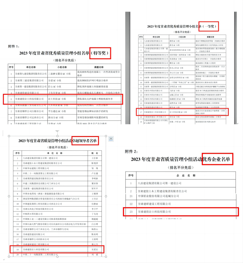 【喜報】建投巖土科技公司榮獲“2023年度甘肅省質量管理小組活動優秀企業”及兩項QC活動成果