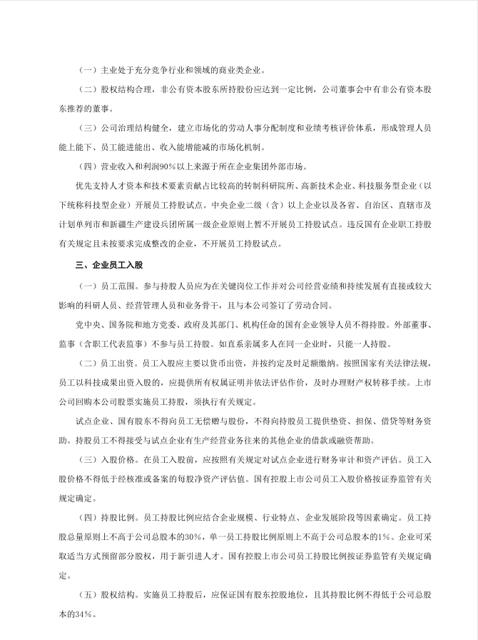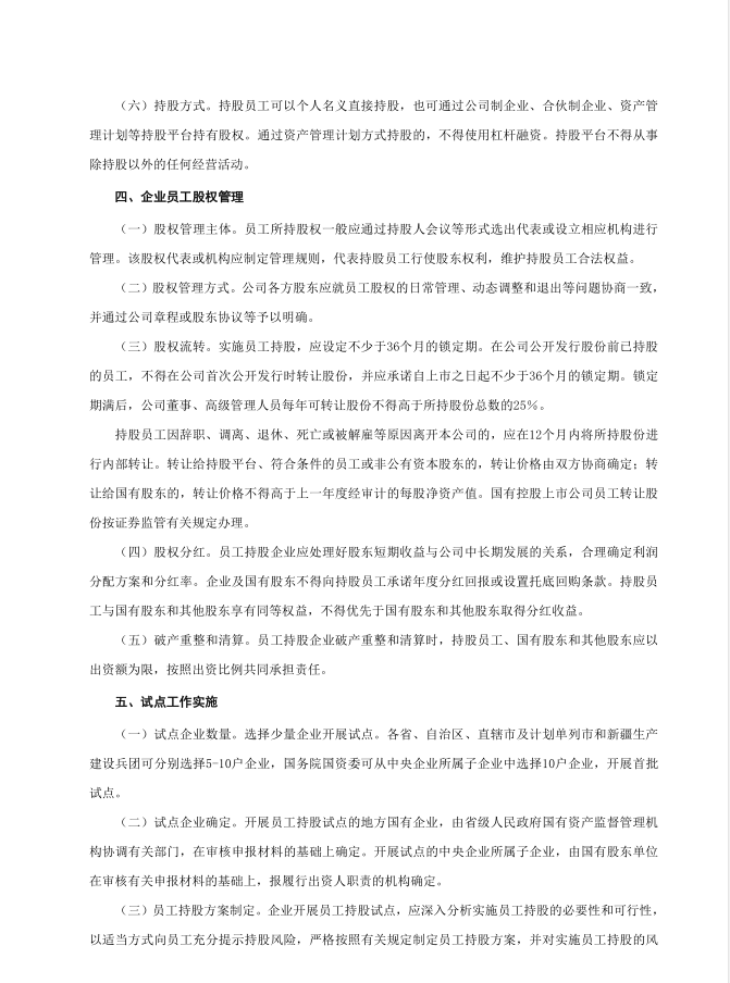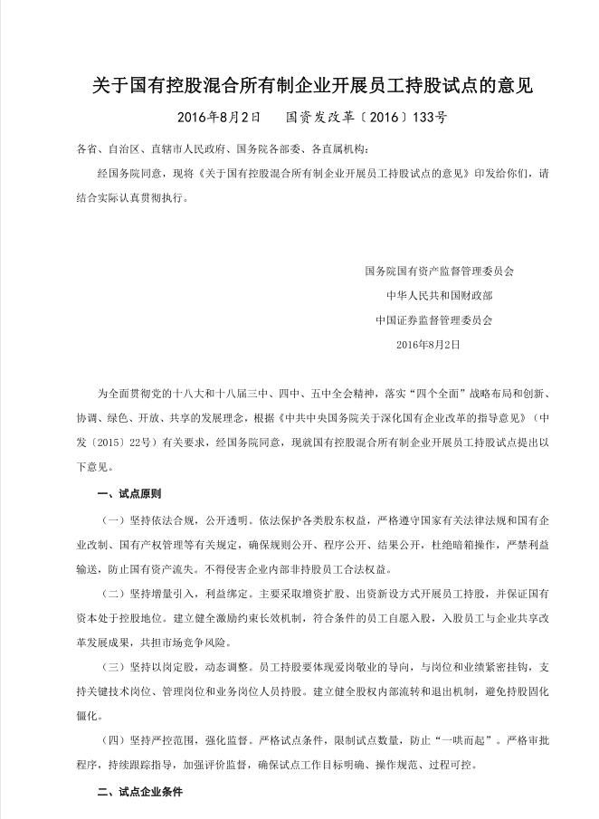 關于國有控股混合所有制企業開展員工持股試點的意見