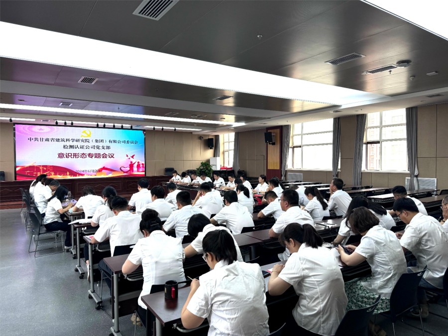 6月12日,檢測認證公司黨支部在建研大廈12樓會議室組織召開意識形態專題會議,所轄各單位主管級干部、支部全體黨員(預備黨員)、發展對象及入黨積極分子參加會議。會議由黨支部書記代曉艷主持。