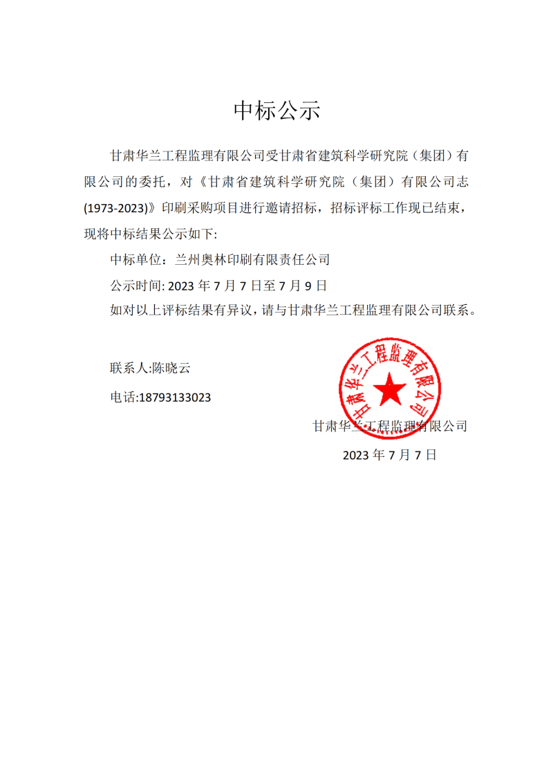 中標公示