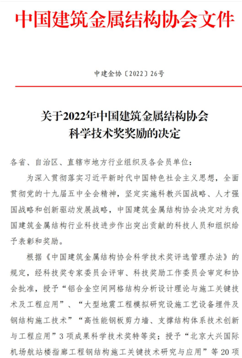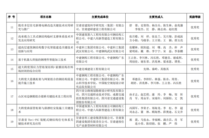 5月5日,由甘肅省建筑科學(xué)研究院(集團(tuán))公司巖土技術(shù)中心申報(bào)的“既有多層住宅新增電梯改造關(guān)鍵技術(shù)應(yīng)用研究與推廣”科研課題榮獲2022年度中國(guó)建筑金屬結(jié)構(gòu)協(xié)會(huì)科學(xué)技術(shù)獎(jiǎng)優(yōu)秀獎(jiǎng),表明了國(guó)內(nèi)建筑鋼結(jié)構(gòu)行業(yè)對(duì)公司創(chuàng)新能力與技術(shù)水平的肯定與認(rèn)可。