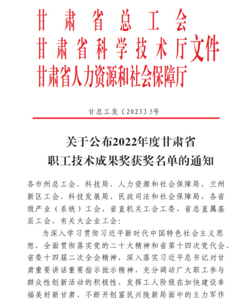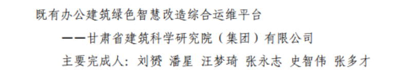 2月1日,2022年度甘肅省職工技術成果獎獲獎名單公布,甘肅建科院既有辦公建筑綠色智慧改造綜合運維平臺項目獲2022年度甘肅省職工技術成果獎三等獎。