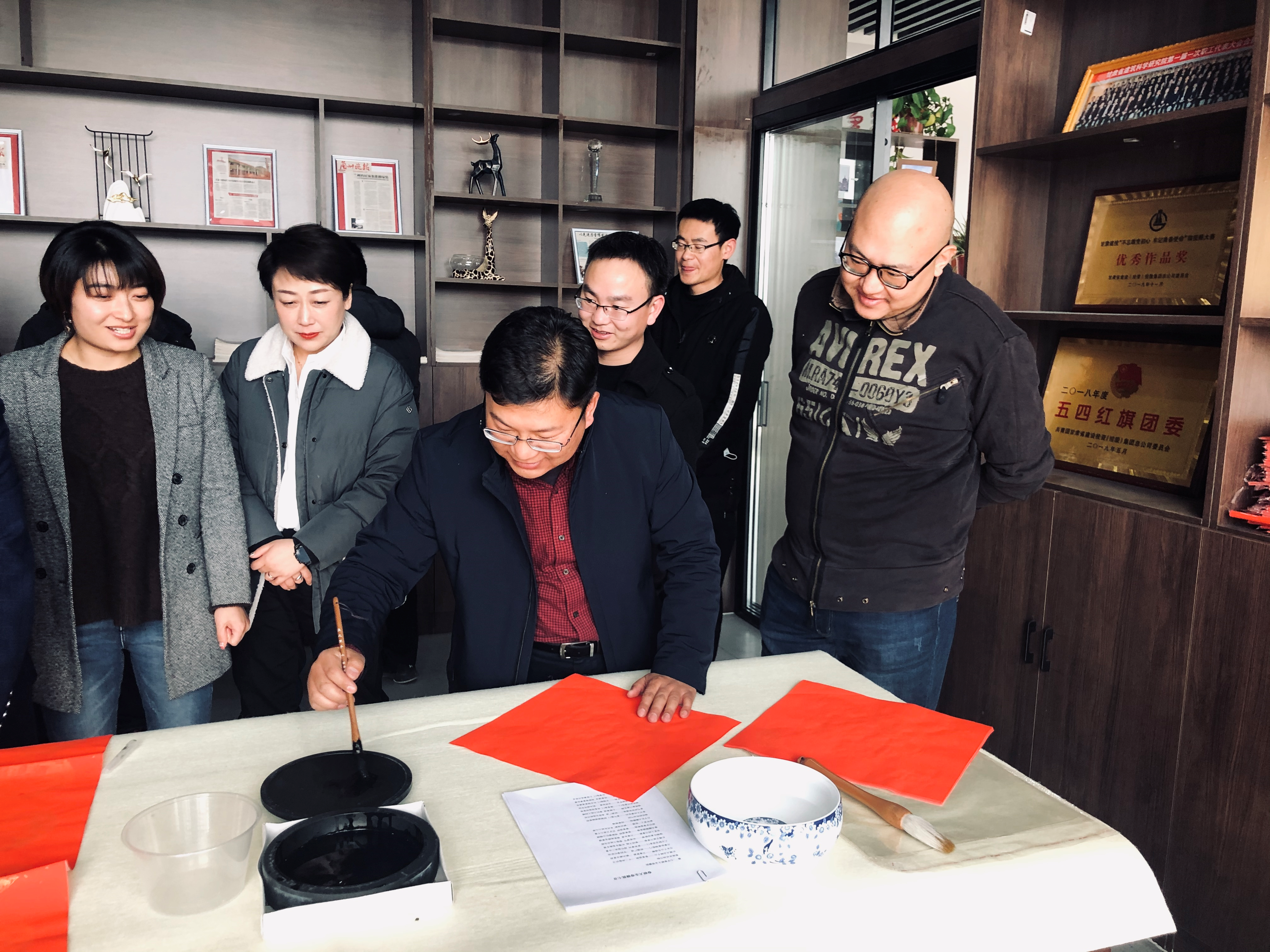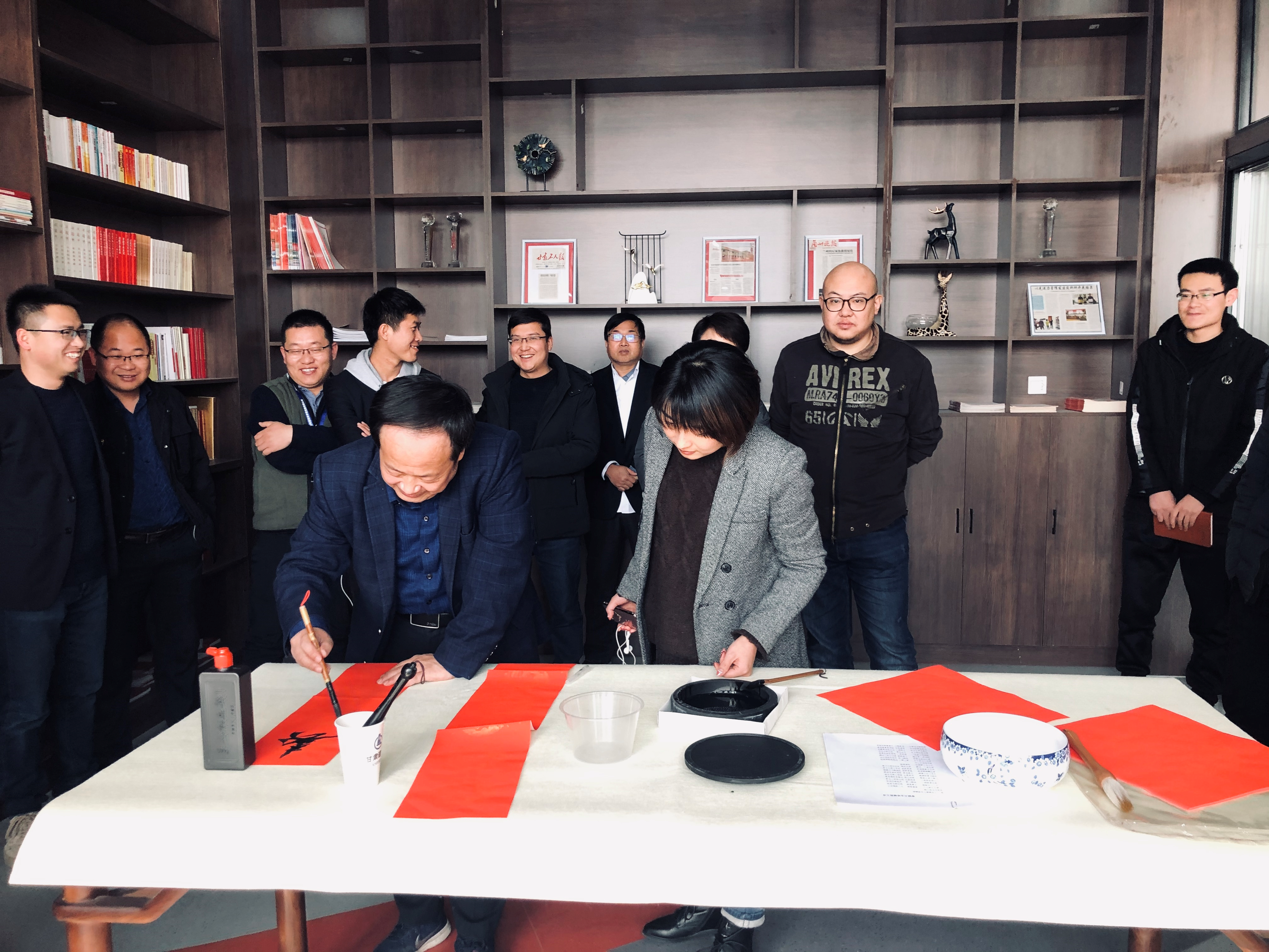 春聯書寫現場氣氛歡快熱烈,濃濃年味撲面而來。公司具有書法特長的領導和職工在公司十二樓活動室樓飽蘸激情,揮毫潑墨。濃濃的墨香,不僅傳遞出傳統文化的魅力,也裝滿了節日的喜慶。一幅幅傳遞吉祥喜慶、表達美好祝福、歌頌美好生活的春聯,既有揮別鼠年、喜迎牛年的美好愿景,又有祈祝平安吉祥、事順年豐的真摯祝愿,字里行間、紅色韻味中表達著對全體干部職工的良好祝愿和對未來的美好展望。聞訊而來的職工一邊欣賞寫好的春聯,一邊根據個人愛好挑選稱心的作品,一些職工還自選對聯內容,請他們書寫。在兩個多小時的活動中,上百幅對聯和福字送到了職工手中。