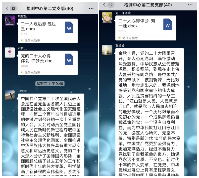 為全面學(xué)習(xí)宣傳貫徹黨的二十大精神,引導(dǎo)職工將黨的二十大精神轉(zhuǎn)化為指導(dǎo)實踐、推動工作的強大動力,檢測中心第二黨支部近日開展“學(xué)習(xí)二十大 助力新征程”主題黨日活動,整理二十大相關(guān)資料利用視頻會議進行學(xué)習(xí),同時結(jié)合線下自學(xué),黨員和積極分子撰寫了學(xué)習(xí)心得感悟35篇。